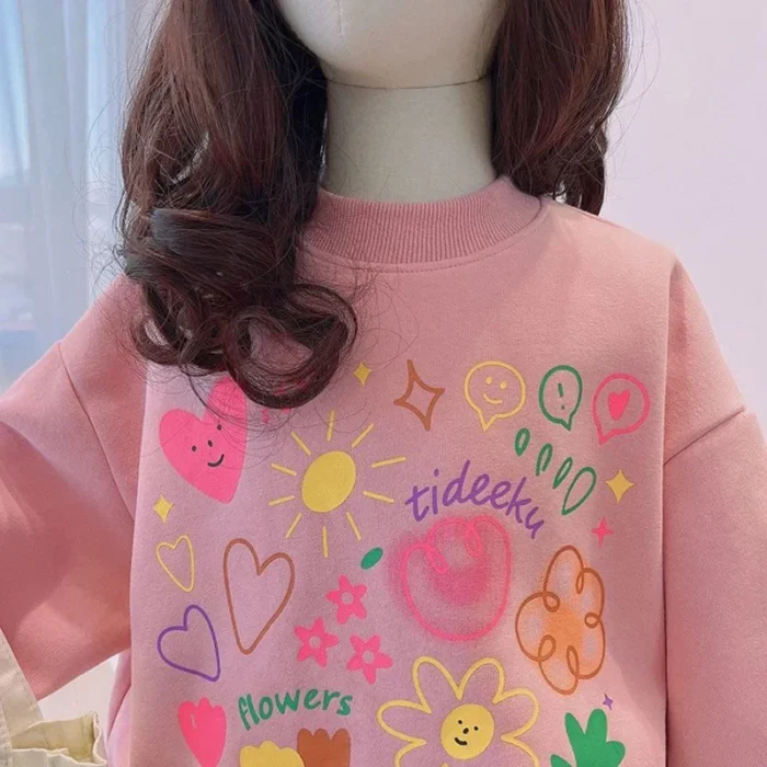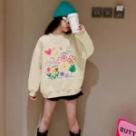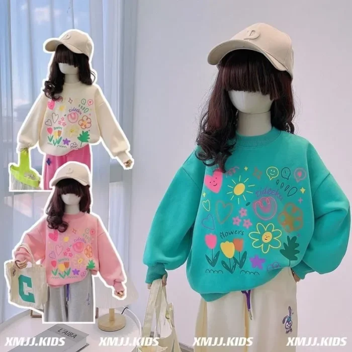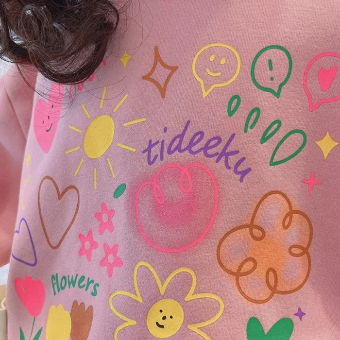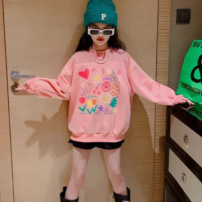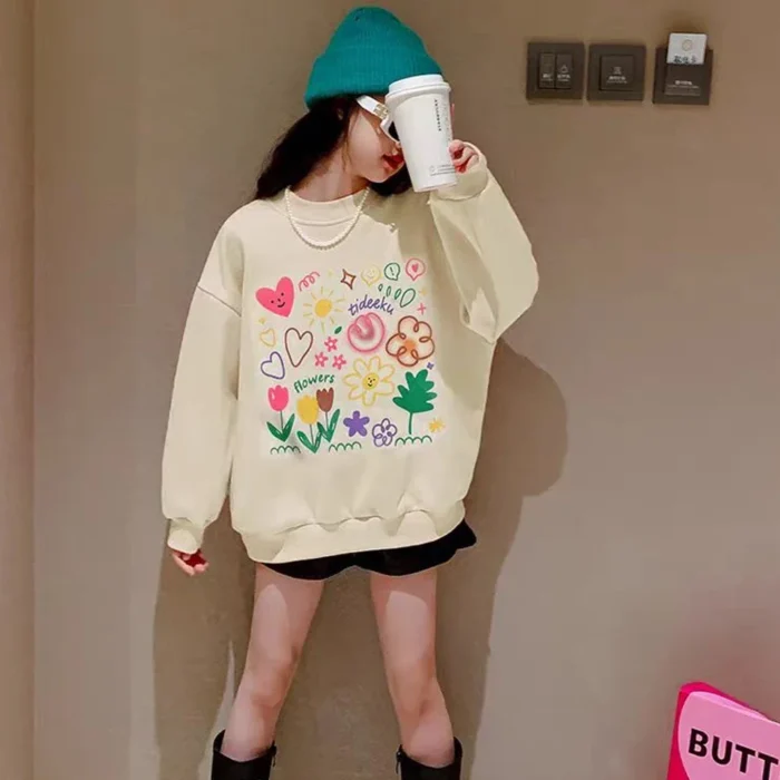 - تصميم جميل: يتزين الهودي برسومات زهور ملونة تضفي لمسة جمالية مرحة، تجعل كل فتاة تشعر بالسعادة والتميز.